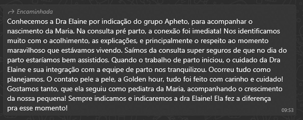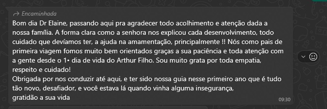 - Atendimento rápido da médica sempre que surgir uma dúvida ou insegurança.